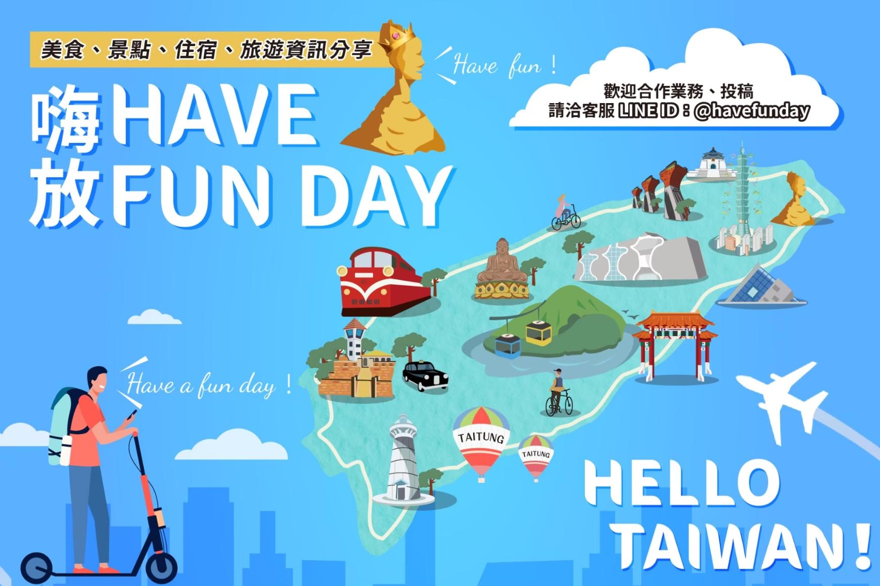 嗨放HaveFunDay是一個提供全台灣美食、景點、住宿、廟宇資訊分享的平台,包含最新熱門必吃美食、熱門旅遊景點,熱門住宿體驗,提供最新資訊分享,體驗台灣的美好。